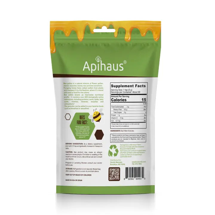 Our Bee Pollen supplements are: -100% Natural -The powerhouse of essential nutrients -Low in fat and sodium -Free of any added GMO, gluten, sugar and preservatives -Rich source of vitamins (particularly B-complex), A, C, E, folic acid and carotenoids -Contains proteins and essential amino acids such as tryptophan, lysine and cysteine. -Contains essential minerals -Variety of enzymes essential to our health.